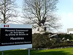 - ↑ (en) « Masnières Newfoundland Memorial » [archive du ], sur le site du Ministère des anciens combattants du Canada, (consulté le ).