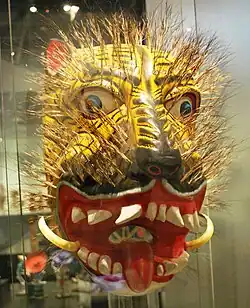 Les masques vont du brut aux plus détaillés pour donner l’impression de vrais visages[45]. La plupart des masques sont ajustés au visage humain, les danseurs observant à travers des fentes juste au-dessus des yeux peints[9]. Les plus petits masques mesurent entre dix et quinze centimètres de large, le reste du visage, bouche comprise, est recouvert d'un tissu[46]. D'autres masques sont beaucoup plus grands que le visage, le porteur regardant par la bouche du masque[9],[47]. Certains masques ont des parties mobiles telles que les lèvres, la langue et les paupières pour les rendre plus animés[9],[48].