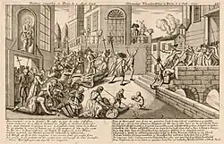 Les massacres au Châtelet et à Bicêtre. Gravure anonyme, Paris, BnF, département des estampes et de la photographie, 1792. | |