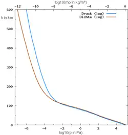 Au sol, l'air a une plus grande masse volumique, une plus grande pression et, sauf en cas d'inversion météorologique, une température plus élevée. Il devient moins dense quand l'altitude augmente. Si la température était constante quelle que soit l'altitude, la pression et la masse volumique de l'air diminueraient de la même manière avec l'altitude, d'après la formule de nivellement barométrique :