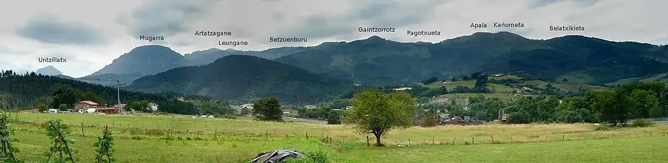 L'altitude moyenne du massif est de 800 mètres mais il possède des sommets significatifs parmi lesquels le Mugarra (969 m) et l'Arrietabaso (1 011 m), appartenant au massif voisin d'Eskuagatx, qui ferment la chaîne par son extrémité orientale tandis qu'à l'ouest se trouve le Belatxikieta (611 m).