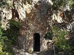 La Sainte Baume est la grotte de l'ermite Honorat d'Arles (saint Honorat) (IVe siècle de l'ère chrétienne). Voir la Vida de sant Honorat du poète Raymond Féraud (XIIIe siècle). Les habitants du coin, jaloux de la popularité de la Sainte Baume de Marie-Madeleine à l'ouest du département du Var, donnèrent également ce nom à la grotte de Saint-Honorat. Ils montaient lui rendre visite. Devant l'afflux de pèlerins, il s'exila quelques années plus tard sur l'île la plus inhospitalière des îles de Lérins, à laquelle il donna son nom. Au fil des siècles d'autres ermites s'installèrent également dans la grotte.