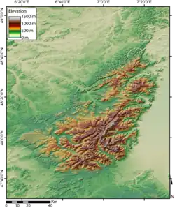 Carte topographique du massif des Vosges. | |