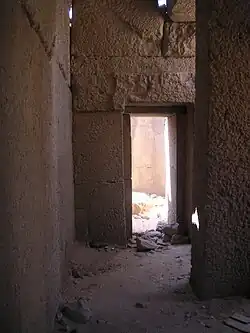 L'extrémité nord de la façade sud est aménagée d'une fausse porte[2]. La fausse porte, dont le linteau présente un appareil dépourvu de joint — ce qui pour H. Junker, exclu une construction faite de briques crues —, est pourvue d'un pas s'élevant à une hauteur de trente centimètres[2].