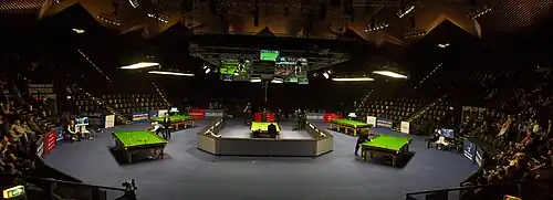 - Le Chinois Ding Junhui, tenant du titre, est éliminé dès le premier tour contre le Gallois Ryan Day[2].