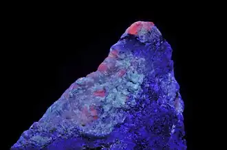 La hackmanite (Na₈Al₆Si₆O₂₄(Cl,S)₂) est une variété photochromique de la sodalite (Na₈Al₆Si₆O₂₄Cl₂). Tout comme les sodalites, le phénomène de ténébrescence est responsable de l’apparition de la couleur violette, par l'absorption de la lumière verte. La teinte peut ensuite disparaître complètement, soit sous l’effet de la chaleur, soit sous une lumière visible intense, ramenant ainsi la pierre à son état initial incolore[4]. Les travaux de M. Weller et M. Lastusaari ont montré que la hackmanite peut être synthétisée en laboratoire, la composition du minéral peut être changée ce qui induit des modifications de couleur de la forme colorée[5]. La tugtupite (Na4AlBeSi4O12Cl) est un minéral rare de la famille des tectosilicates, souvent associé à la sodalite et trouvé principalement au Groenland. La tugtupite présente une absorption dans la plage de longueurs d'onde comprises entre 490 et 535 nm. Elle est connue pour sa fluorescence intense sous la lumière UV et sa capacité à changer de couleur passant du rose au rouge vif, en suivant le mécanisme de la ténébrescence[3].