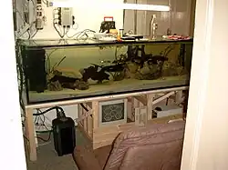 Le commerce d'aquariophilie fournit des meubles en bois renforcé, et protégés contre l'eau, ceci pour éviter la pourriture due aux éclaboussures qui vont inévitablement se produire, dont les dimensions correspondent à celles des bacs d'aquarium du commerce.