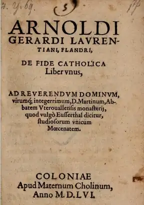 - De optimo scriptvras interpretandi genere libri III. Siue, vndena solida scripturarum sacrarum veritas, sensusq; germanus ac verus nunc temporis sit pretendus : an ex Hebraica, quam dicunt, veritate : num fontibus Graecis hauriendus : an vulgata potius editione Latina quaerendus, vti in Concilio Tridentino dudum definiebatur? Avthore Reveren. D. Vuilhelmo Lindano Dordraceno, S. T. D. Regio Consiliario, Reuerendiss. Episcopi Traiecten. per Frisiam Commissario, et Archidiacon. Vicario. Coloniæ, apud Maternum Cholinum. Anno 1558. In-12, de 151 ff.
