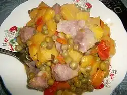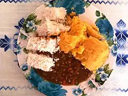 Le matooke peut être servi avec un ragoût de chèvre ou de bœuf ou une sauce d'arachides et des légumes.