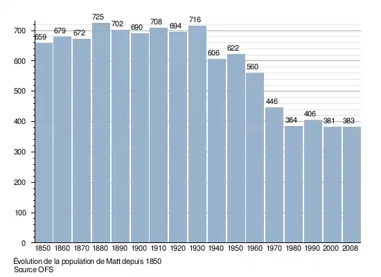 Le graphique suivant résume l'évolution de la population de Matt entre 1850 et 2008[3] :