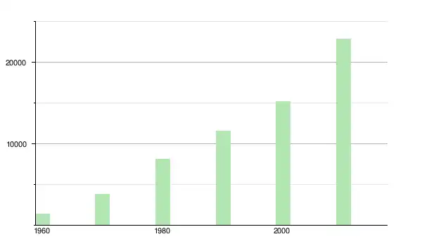| 1970 | 3 797 | ▲ +159,71 % | |
