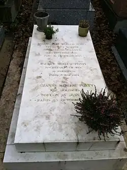 À l'âge de cinquante-trois ans, il meurt d'un arrêt cardiaque le soir du [2], assis à son bureau, où la Dioptrique de Descartes était encore ouverte[22]. « Il laisse une œuvre considérable, inachevée, et singulièrement un livre auquel il travaillait et qui devait constituer son chef-d'œuvre : Le visible et l'invisible »[23]. Il est inhumé au cimetière du Père-Lachaise (52e division).