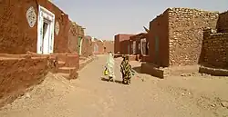Rue de Chinguetti : niveau atteint par l'ensablement (environ 2,80 m) avant l'intervention de 2003.