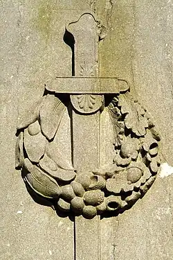 Chacune de ses faces est ornée d'un glaive traversant une couronne de feuilles de laurier et de feuilles de chêne.