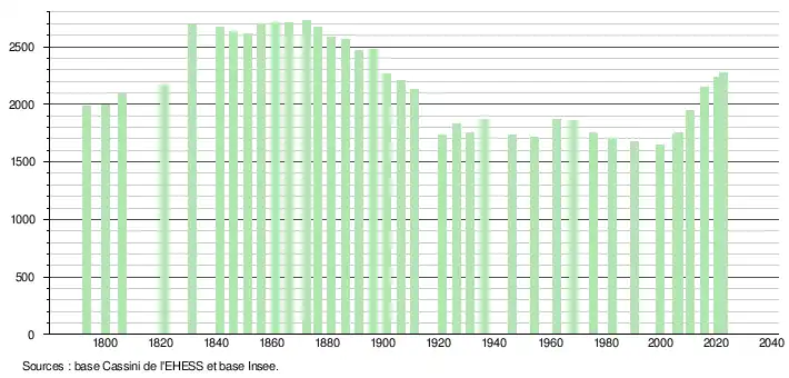 - ↑ Fiches Insee - Populations de référence de la commune pour les années 2006, 2007, 2008, 2009, 2010, 2011, 2012, 2013, 2014, 2015, 2016, 2017, 2018, 2019, 2020, 2021 et 2022.