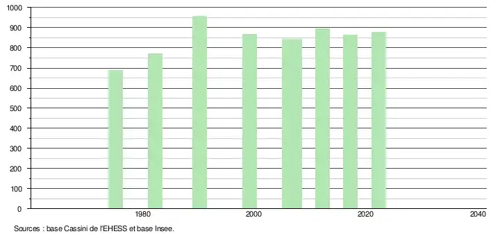 - ↑ Fiches Insee - Populations de référence de la commune pour les années 2006, 2007, 2008, 2009, 2010, 2011, 2012, 2013, 2014, 2015, 2016, 2017, 2018, 2019, 2020, 2021 et 2022.