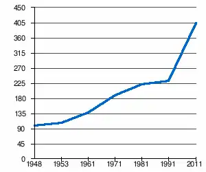 - 1 2 (sq) « Évolution de la population 1948-2011 », sur pop-stat.mashke.org (consulté le ).