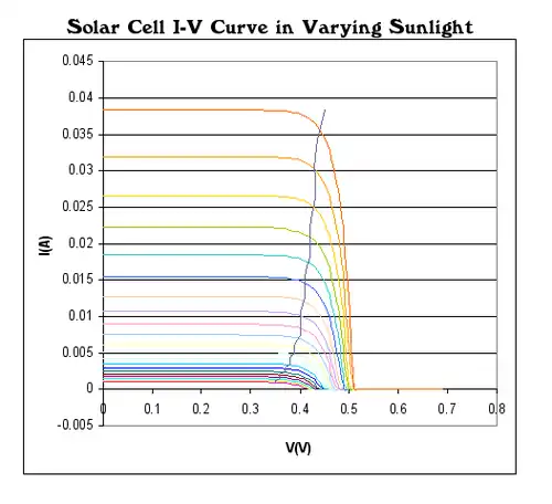 Dans le cas d'un panneau solaire, l'intensité maximale possible I est dépendante de la puissance lumineuse reçue par la cellule photovoltaïque. Tant que la puissance demandée ne dépasse pas la capacité de la cellule, l'intensité I est maximisée par l'ensoleillement reçu. Quand la puissance demandée augmente trop, la Tension U baisse, jusqu'à zéro. Dans ce cas, la puissance réellement obtenue est, elle aussi, nulle. Pour maximiser la puissance P réellement obtenue, on va faire varier la tension U circulant dans la cellule, et atteindre la tension U la plus haute possible sans faire baisser l'intensité I.