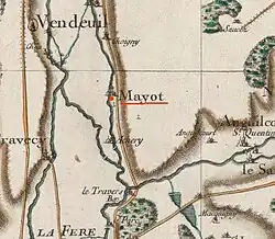 La carte de Cassini montre qu'au XVIIIe siècle, Mayot était une paroisse située sur la rive gauche de l'Oise. Le chemin de Ribemont à Tergnier traverse la commune.