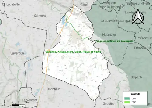 Le réseau Natura 2000 est un réseau écologique européen de sites naturels d'intérêt écologique élaboré à partir des directives habitats et oiseaux, constitué de zones spéciales de conservation (ZSC) et de zones de protection spéciale (ZPS)[Note 3]. Un site Natura 2000 a été défini sur la commune au titre de la directive habitats : « Garonne, Ariège, Hers, Salat, Pique et Neste »[29], d'une superficie de 9 581 ha, un réseau hydrographique pour les poissons migrateurs, avec des zones de frayères actives et potentielles importantes pour le Saumon en particulier qui fait l'objet d'alevinages réguliers et dont des adultes atteignent déjà Foix sur l'Ariège[30].