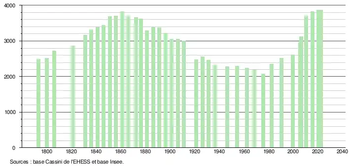 - ↑ Fiches Insee - Populations de référence de la commune pour les années 2006, 2007, 2008, 2009, 2010, 2011, 2012, 2013, 2014, 2015, 2016, 2017, 2018, 2019, 2020, 2021 et 2022.