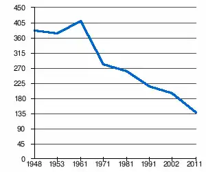 - 1 2 (sr + en) « Livre 20 : Vue d'ensemble comparative de la population en 1948, 1953, 1961, 1971, 1981, 1991, 2002 et 2011, données par localités) » [PDF], pages du recensement de 2011 en Serbie - Institut de statistique de la république de Serbie, (consulté le )