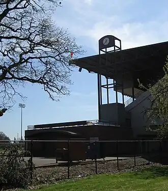 Tous les sièges de la tribune ouest du stade sont couverts. Les tribunes incluent une salle de presse, des bureaux et des vestiaires[13].