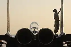 Un F-15E Strike Eagle en mission en Afghanistan, 2008. | |