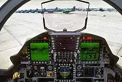 | AN/APG-82 AESA (radar à impulsions Doppler en bande X), AN/AVQ-26 Pave Tack, AN/AXQ-14 (liaison de données), LANTIRN (système de navigation à basse altitude et de ciblage infrarouge de nuit), AN/APX-76 Hazeltine (interrogateur IFF), AN/ALQ-135(V) (Contre-mesures électroniques), AN/ALQ-128 Magnavox (équipement d'alerte radar), AN/ALR-56 Loral (détecteur d'alerte radar), AN/ALE-45 Tracor (éjecteurs de paillettes et fusées) | |