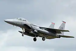 Le McDonnell Douglas F-15E Strike Eagle est un chasseur-bombardier d'assaut tout-temps américain en grande partie dérivé du F-15 Eagle, avion de chasse tout-temps dit de « supériorité aérienne ». Il a été conçu dans les années 1980, afin d'effectuer des opérations d'interdiction en profondeur à grande vitesse sans le support de chasseurs d'escorte ou d'avions de guerre électronique. Il a été déployé dans les opérations Tempête du désert, en Irak, et Allied Force, en Serbie, effectuant des frappes en profondeur contre des cibles de haute valeur, des patrouilles, et fournissant un appui aérien rapproché aux troupes de la coalition. Il a également été déployé dans les conflits qui ont suivi et a été exporté dans plusieurs pays. Le F-15E Strike Eagle de l'US Air Force se distingue des autres versions par son camouflage plus sombre, « Dark Navy Blue » (bleu marine foncé) ou « Dark Blue Grey » (bleu gris foncé), et ses réservoirs conformes « FAST » (Fuel And Sensors Tactical) montés le long des entrées d'air, désignés « Conformal Fuel Tanks » dans leur langue d'origine (CFT).