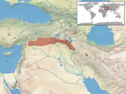 Cette espèce se rencontre en Iran, en Irak, en Syrie et en Turquie[1].