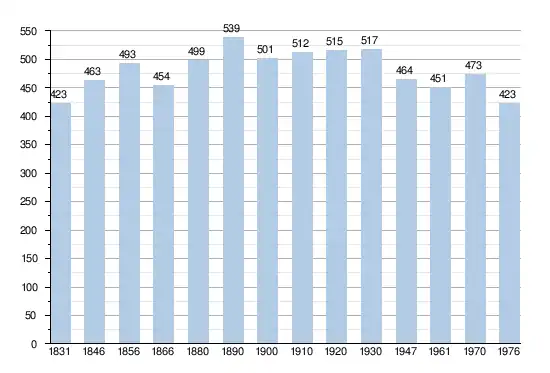- Sources : INS, Rem. : 1831 jusqu'en 1970 = recensements, 1976 = nombre d'habitants au 31 décembre[2].