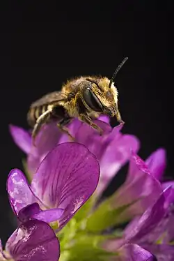 - ↑ (en) Constance S. Stubbs et Francis A. Drummond, « Management of the alfalfa leafcutting bee, Megachile rotundata (Hymenoptera : Megachilidae), for pollination of wild lowbush blueberry », Journal of the Kansas Entomological Society, vol. 70, no 2, (lire en ligne [PDF], consulté le ).