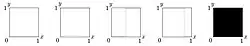 En présence d'asymétries dans les paiements, une plus grande diversité de fonctions de réactions est possible. Pour chaque joueur, il y a ainsi cinq types possibles de forme de meilleure réponse, ainsi qu'illustré par la figure 6. De gauche à droite : stratégie dominée (toujours jouer 2), stratégie dominée (toujours jouer 1), croissante (jouer 2 si la probabilité que l'autre joueur joue 2 est supérieure à un certain seuil), décroissante (jouer 2 si la probabilité que l'autre joueur que 1 est supérieure à un certain seuil), indifférente (les deux stratégies sont équivalentes quelle que soit la stratégie de l'autre joueur).