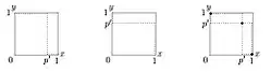 Fig. 1 - Fonction de meilleure réponse pour le joueur Y dans le jeu de la chasse au cerf