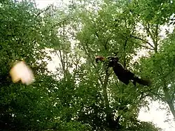 - Le gibbon qui se baladait attaché à un fil suspendu dans le parc animalier