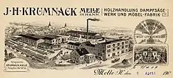 En 1870, la société J.H. Krumnack, Möbelfabrik, Dampfsägewerk und Holzhandlung a été fondée à Melle. Un terrain situé à proximité de la gare avec accès par la « Oldendorfer Straße » a été choisi comme site d'implantation afin de pouvoir exercer une activité suprarégionale. Une première expansion eut lieu en 1904 avec la construction du bâtiment d'usine de trois étages, qui existe encore aujourd'hui, dans une architecture industrielle classique, ainsi que d'un bâtiment de bureaux et d'habitation. Quelques années plus tard, une nouvelle salle des machines fut construite.