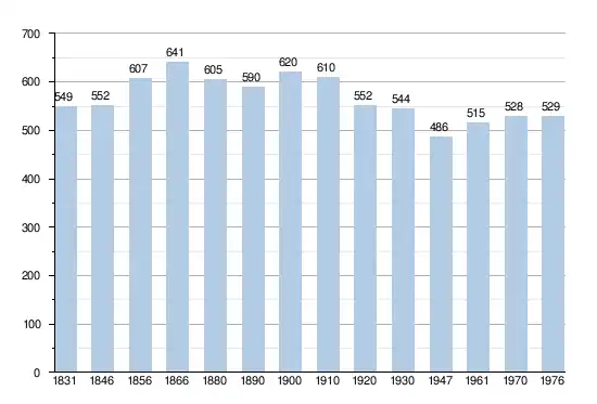 - Sources:INS, Rem:1831 jusqu'en 1970=recensements, 1976= nombre d'habitants au 31 décembre