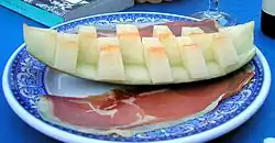 Le melon au jambon est une spécialité que l'on retrouve en France, Espagne et Italie[1],[2], et qui est habituellement servie au printemps, ou en été. Les ingrédients principaux sont du melon et des tranches de jambon cru. La finesse de ce plat est dans le mélange sucré du melon avec le salé du jambon.