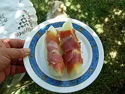 - ↑ (es) Irene S, « Melón con jamón, un romance veraniego con años de historia. ¿Sabes cuál fue su origen? », sur GastroMadrid, (consulté le )