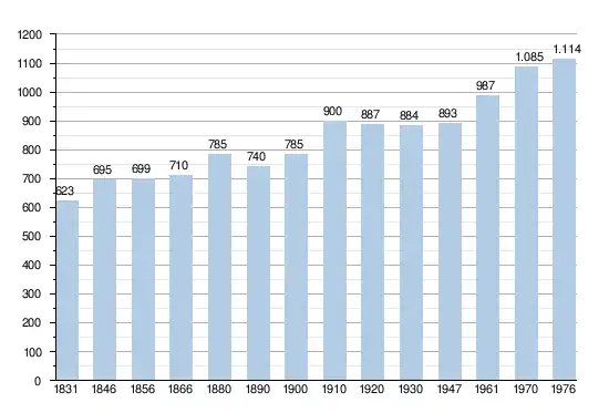 - Sources : INS, Rem. : 1831 jusqu'en 1970 = recensements, 1976 = nombre d'habitants au 31 décembre[2].