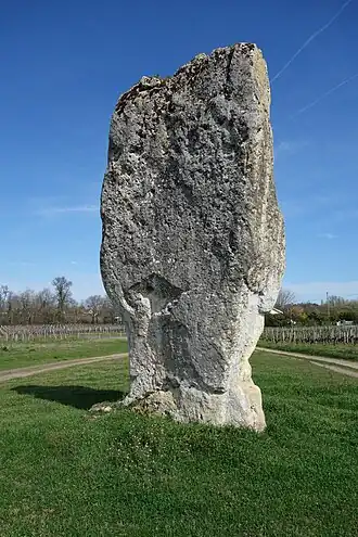 Le menhir est constitué d'un bloc monolithe de section quadrangulaire et légèrement incliné taillé dans un calcaire à astéries. Il a vraisemblablement été extrait des affleurements de ce type de roche, situés à environ 2,5 km du site à Saint-Émilion.