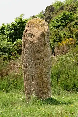 Il s'agit d'une pierre levée, vaguement antropomorphe, relativement plate : 2,10 m de haut pour 0,66 m de large et 0,24 m de profondeur. Une croix chrétienne est gravée près de son sommet, sur sa face occidentale. Cette croix latine fait 16 cm de haut pour 10 cm de large. Elle est gravée sur moins d'un centimètre de profondeur[2].
