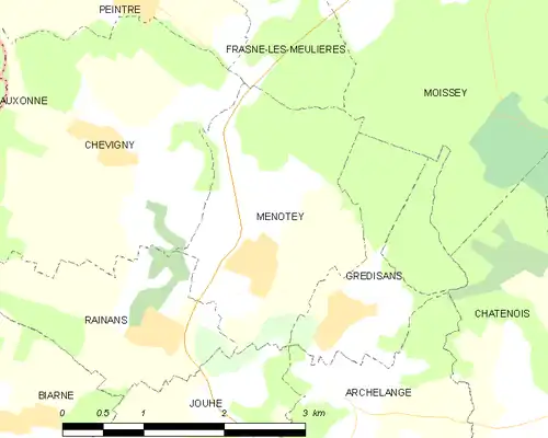 - ↑ « Orthodromie entre Menotey et Dole », sur fr.distance.to (consulté le ).