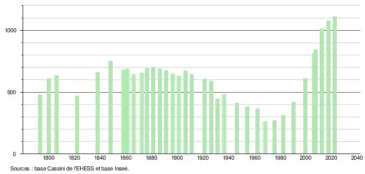 - ↑ Fiches Insee - Populations de référence de la commune pour les années 2006, 2007, 2008, 2009, 2010, 2011, 2012, 2013, 2014, 2015, 2016, 2017, 2018, 2019, 2020, 2021 et 2022.