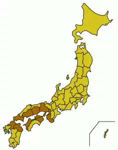 - sur Honshū : Wakayama, Ōsaka, Hyōgo, Okayama, Hiroshima et Yamaguchi ;