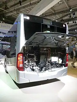 | Citaro 2 Gaz (GNV) (ZF - VOITH) | 2014 - ... | 6 cylindres en ligne M 936 G | Euro 6 | 7 700 cm3 (7,7 L) | 222 kW (302 ch) | 1 200 N m à 1 200–1 600 tr/min | ||
