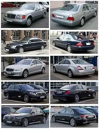 | W140 ; V140 ; VV140 (1993 - 1998 (2000)) | 406 710 exemplaires (1991 à 1998 - berline) | Classe E (W124 - E 500) ; Classe CL (Type 140) ; Classe SL (Type 129). | Audi A8 D2 ; BMW Série 7 (E38) ; Jaguar XJ (X300 et X308) ; Lexus LS (XF20) ; Rolls-Royce Silver Spirit. |