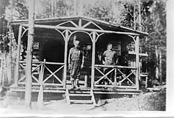 Ce sentier de portage où les Dumulon ont construit leur premier établissement est vraisemblablement celui qui était utilisé bien avant l’arrivée des prospecteurs. En effet, il apparaît déjà sur une carte dressée par John Bignell en 1895[3]. L’établissement des Dumulon au lac Rouyn n’est pas le premier camp allochtone répertorié. Quelques années auparavant, le célèbre prospecteur Edmund Horne y avait également érigé son camp, qui était toujours occupé au moment de l’arrivée des Dumulon, et situé non loin du site choisi par ces derniers[2]. Ce même sentier de portage apparaît encore sur une carte du canton de Rouyn dressée en 1923, probablement peu de temps avant l’établissement des Dumulon[4].