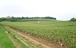 - Vue des Clos des Montaigus (premier cru) et du château de Montaigu.
